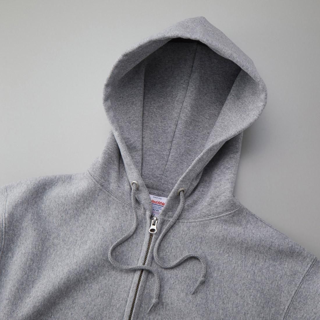 大きめできれいな形のフードにこだわった、ダブルスライダーで着まわしやすいジップパーカ